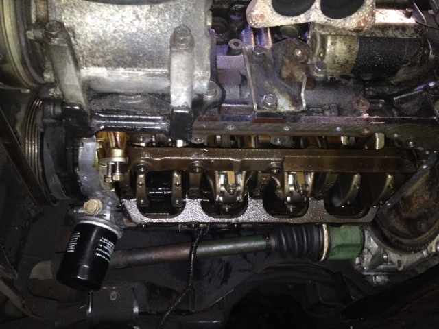 Gisteren heb ik de motor voor een deel ontmanteld om de verdachte lagerschade te bekijken/verifieren. Nadat de voorpijp + katalysator op mijn wenkbrauw viel (prachtige boksersnee mee spectaculair veel bloed) en de carterpan eraf was kwam ik tot maar 1 conclussie: geen lagerschade! Ze zagen er werkelijk nog perfect uit, alsof ze gisteren gemonteerd waren. Ook in de carterpan geen drab of brokjes, dus dit kan wel 'ns een meevallertje worden :)