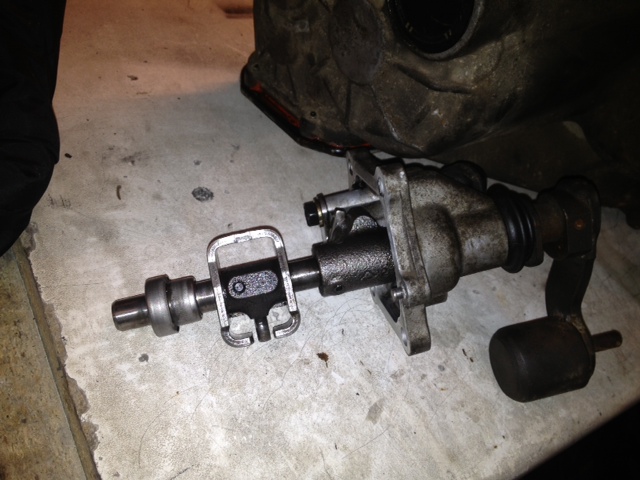 Je bent toch bezig, dus trek ook meteen de 4 bouten los van het huisje waar de bedieningsarm van de versnellingskabels aan bevestigd zitten. Als het ding niet los wil: er zit pakkingsmateriaal tussen, dus een beetje voorzichtig wrikken op de wrik-punten zal helpen! En als ie wel een stukje loskomt maar er niet helemaal uit? Zet dan de versnellingshendel in een andere versnelling!