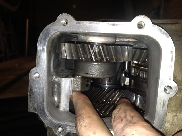 Gebruik een koevoet(je) en/of schroevendraaiers om de twee helften van de versnellingsbak van elkaar af te trekken. Misschien een tik op de bovenkant of een beetje gewiebel en dan ineens trek je zo de 'deksel' er van af. Eigenlijk staan alle onderdelen dus op de 'schelp':