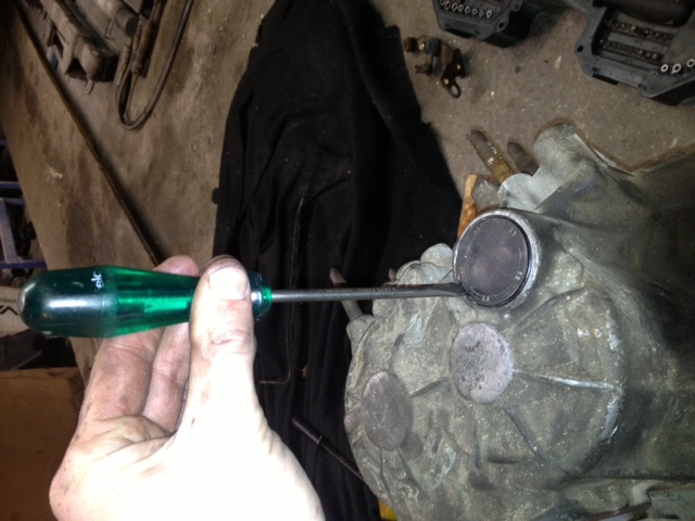 Die magneet zit zoals je hierboven ziet gewoon los in een ruimte van de versnellingsbak. Haal het ding eruit en bekijk nauwkeurig hoeveel en wat voor ijzer-stukjes eraan zitten! Als dat slechts minimaal is en je hebt verder geen klachten gehad tijdens het schakelen dan is de kans vrij groot dat er niet veel mis is met de tandwielen. Zit er wel veel ijzer aan, dan moet je proberen uit te zoeken waar dat vandaankomt! Het is sterk aan te bevelen om bij twijfel alle 6 de hoofdlagers te vervangen (2 aan de ingaande as, 2 aan de uitgaande as en 2 in het differentieel). Daarnaast ook alle o-ringen/keerringen. Dat kost wel een paar centen bij elkaar, zeker omdat je ook waarschijnlijk een nieuwe koppelingshevel, dat ronde hevel-kopje (MD719602) en het hoefijzer-vormige plaatje (MD747282) plus misschien nog wat van dat spul vervangt, maar... dan is je bak wel weer in tip-top conditie en kan ie weer jaaaaren mee! Doe dan wel de juiste (!) olie erin natuurlijk. De enige juiste is GL4 VOL-synthetisch 75W-90. ALLE ANDERE OLIE IS NIET GOED VOOR DEZE BAKKEN! Ik (en intussen velen met mij) gebruik uitsluitend Amsoil (type MTG of als schakelen van 1 naar 2 ook met MTG nog altijd stroef gaat MTF), te verkrijgen via MD-Performance.