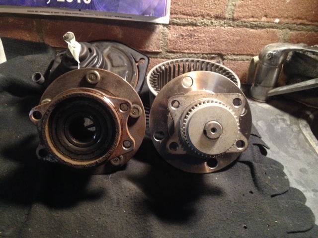 Het slechte nieuws: die achterste hubs van een VR4 gaan niet passen. De maat van de wiellager-hub/behuizing (die 4 gaten die je vanachter voorziet van een setje bouten waarmee de hele boel op z'n plek blijft) is fors anders. EN de ABS ring die op een asje zit geperst op de gewone V6 hubs mis je ook en ook dat is niet over te zetten. Nou... laat ik eerlijk zijn: ik zou niet weten hoe.