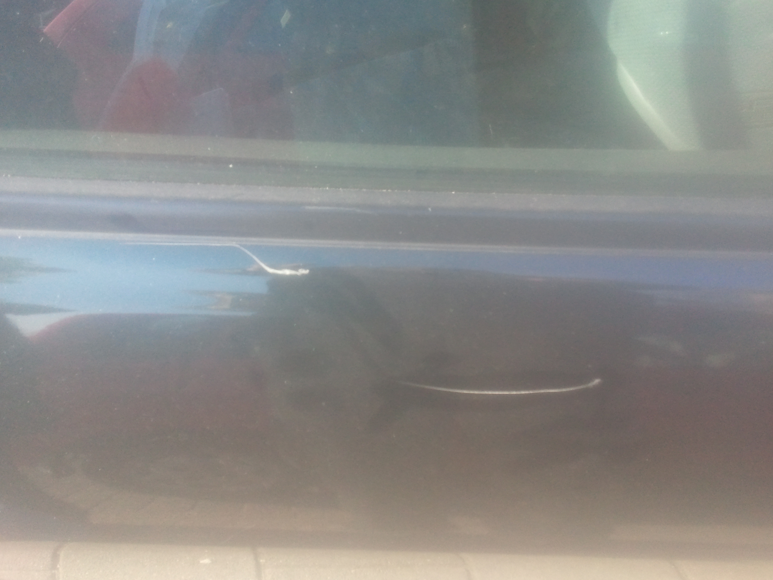 oh bah. Dat ziet eruit als een aanhangwagen-kras ofzo. Ook een deuk?