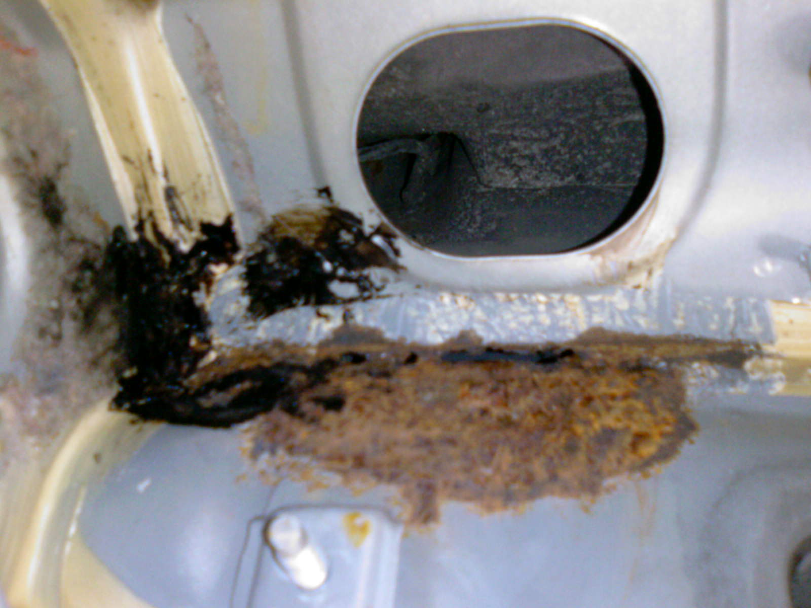 Natte voeten in je 6G? Haal het handschoenenkastje maar eens los en kijk helemaal rechts naar boven, richting het raam (wat je dan overigens niet kunt zien). Zie je daar (een bonk) roest of een gat zitten? Goede kans. Helaas. Het is een pestklus, maar de enige echt definitieve manier om dit euvel te verhelpen is 'even' het dashboard eruit halen (niet ingewikkeld, wel een paar uur werk) en dan het rotte stuk eruit halen en een nieuw stuk inlassen.