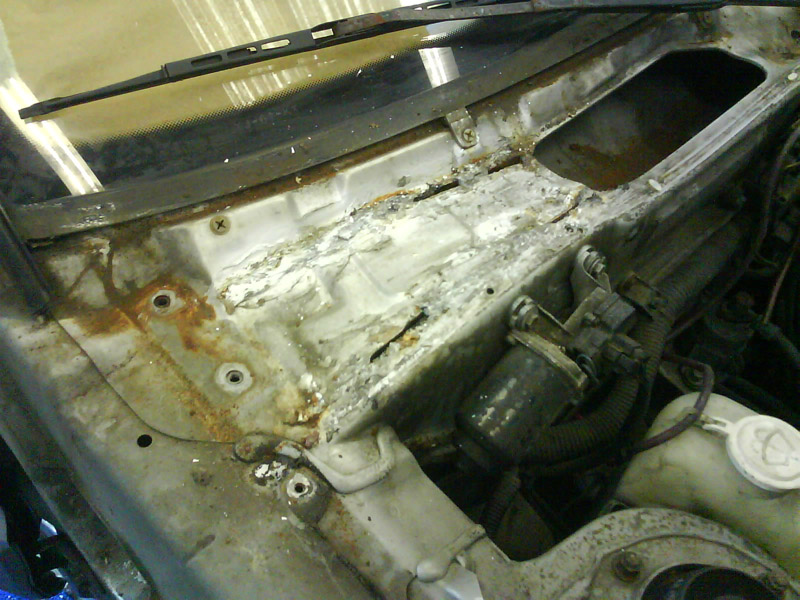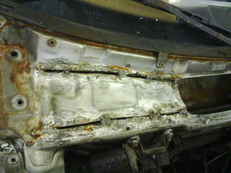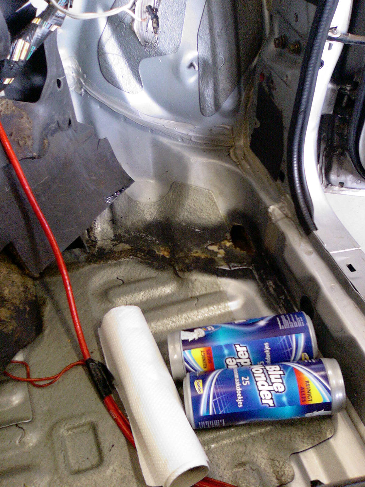 Maar als het eenmaal nat is, dan moet je aan de bak. In mijn grijze (en trouwens in de witte GLi ook) waren ze rot. De grijze GTi heb ik eerst door een prutsgarage het laten fixen, maar hun oplossing was een erg slechte: PUR en kit en wat extra gaten. Ik heb toen besloten om het goed te doen en alles uit de auto te halen (bekleding, dashboard... ach alles eigenlijk).