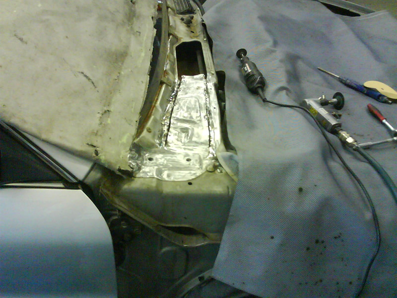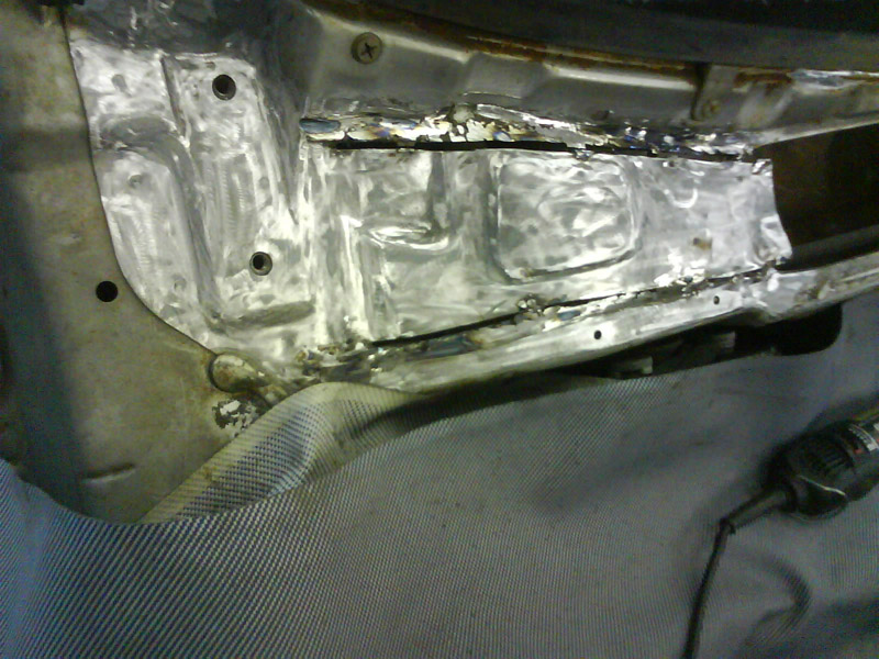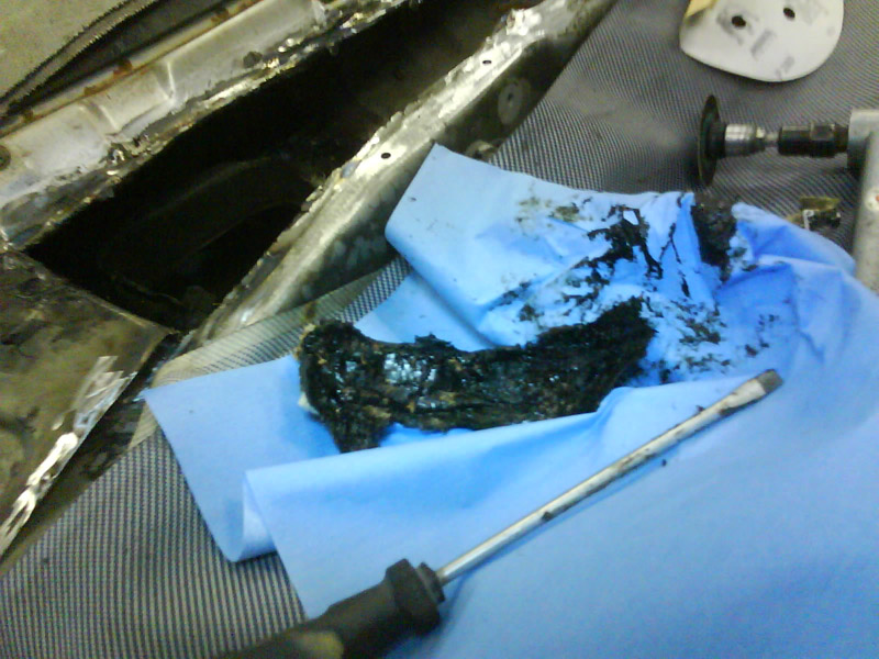 Ook bleek er toen in de voetruimte een flink gat te zijn ontstaan. Allemaal gelast en daarna in de verf en tectyl gezet.