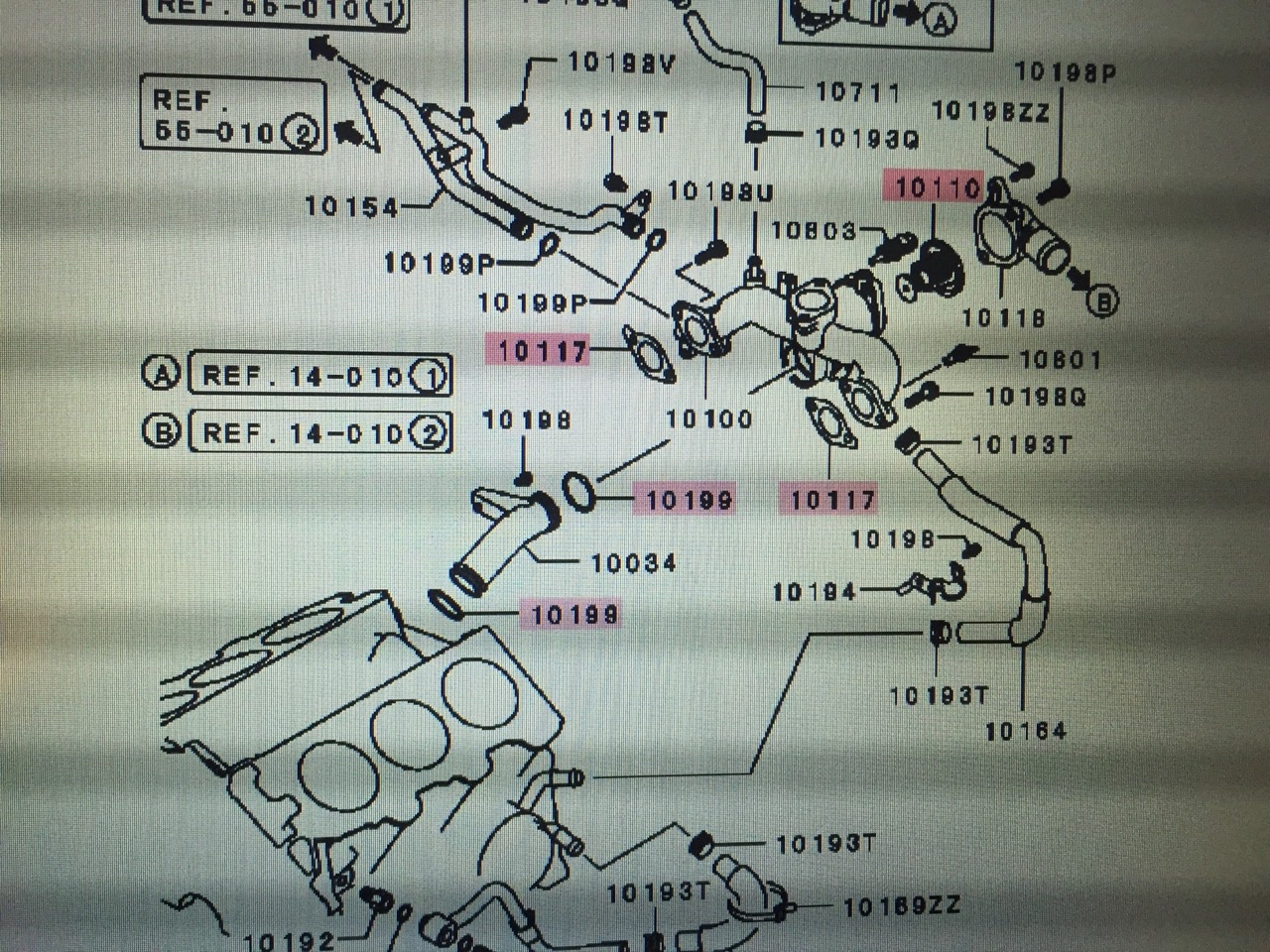 Ik had ook lekkage en het lijkt er op dat het kwam door een rubberen ring (10199) bij het thermostaathuis (daar onder zaten sporen van koelvloeistof, alleen m.b.v. een spiegeltje te zien).