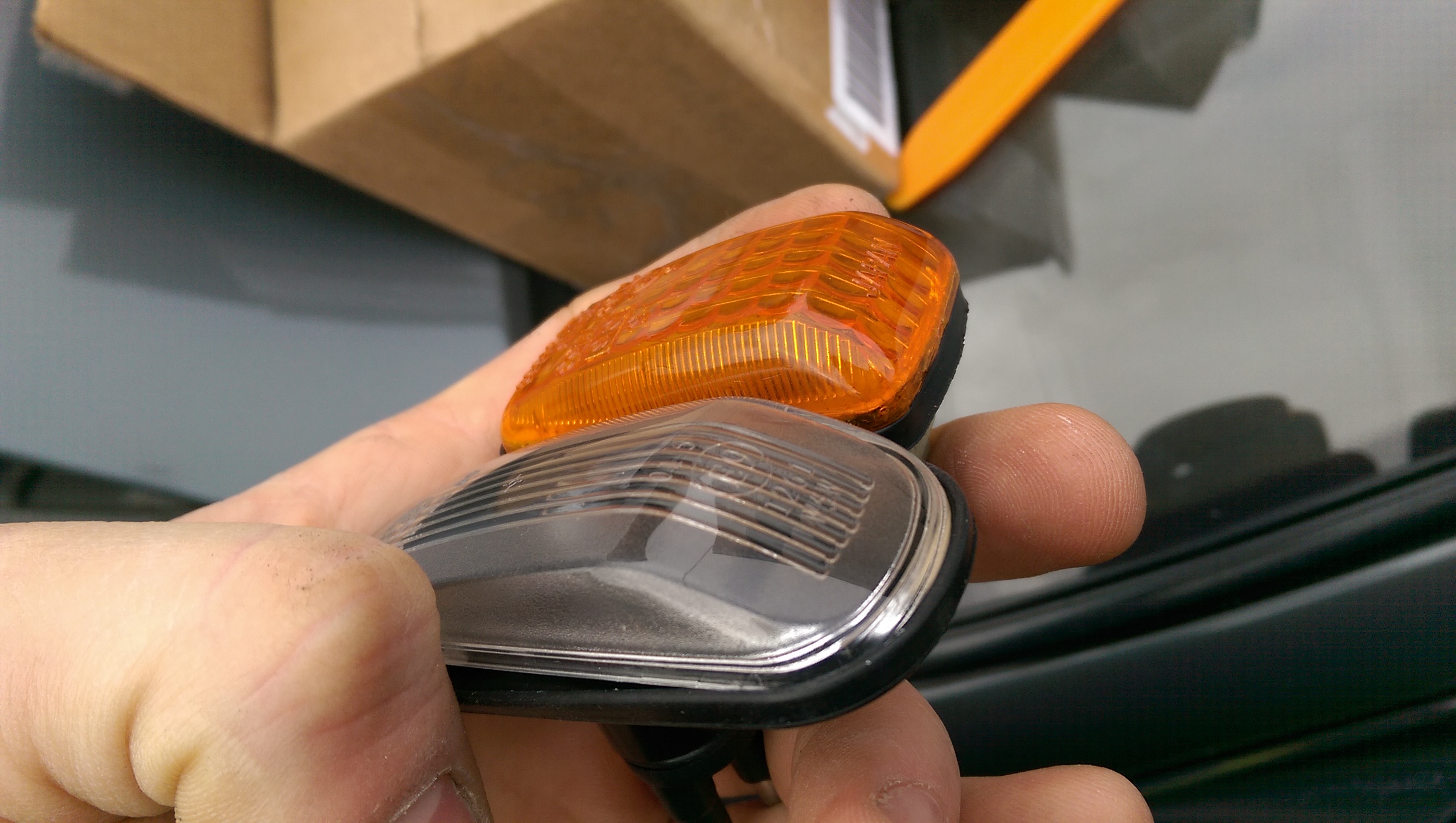Zo , heldere zijknipperlichten zijn ook besteld. Zagen uit alsof ze er origineel op hoorden bij de zwarte GTi, dus dat zit wel goed.
