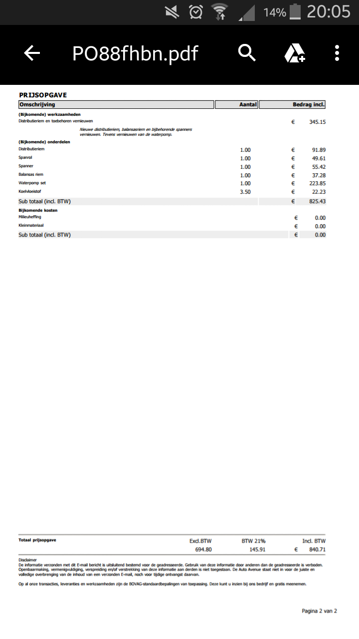 Bij dealer opgaaf gedaan toen, bijna € 1800,-