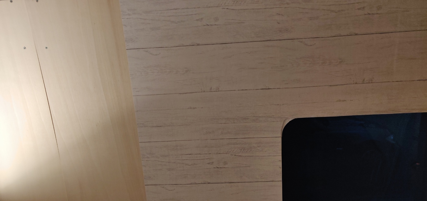 Before and after: Nu zijn we intussen alweer even bezig met het laatste grote meubel: de staande hoge kast die een kleine 25-30cm van de zijschuifdeuropening gaat verkleinen. Hierin komt een uitschuifbaar toilet (klaar), daarboven een compartiment voor de koelkast en daarboven een grote opbergkast met grote klep die naar boven toe openscharniert. Dit blijkt een behoorlijke klus te zijn... De niet rechte wanden, het schuifdeur railsysteem, alles heeft rare, moeilijke vormen dus dit blijkt een meerdaags-meubel te zijn.