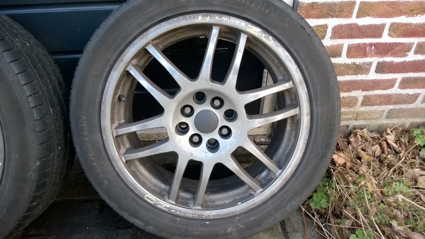 Beetje rommelig gezicht met de running velgen op de achtergrond.