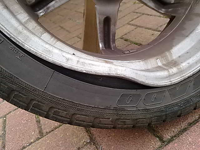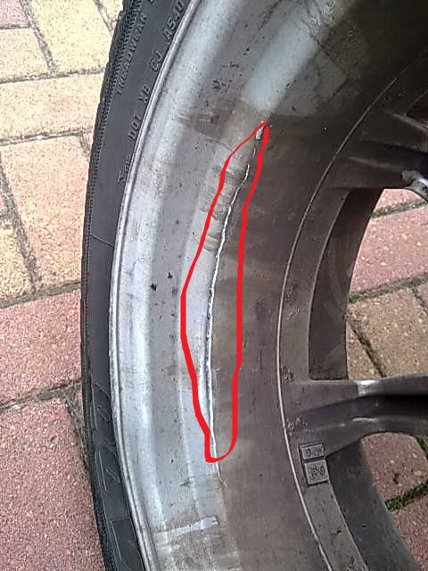 Wat een beschadigingen trouwens aan die "oude" velgen. Is 'ie nou letterlijk gebarsten binnen de rand die jij omcirkelt hebt? Zo ja, dan heeft hij echt een harde klap te verwerken gekregen. Wielophanging heeft geen tik meegekregen?
