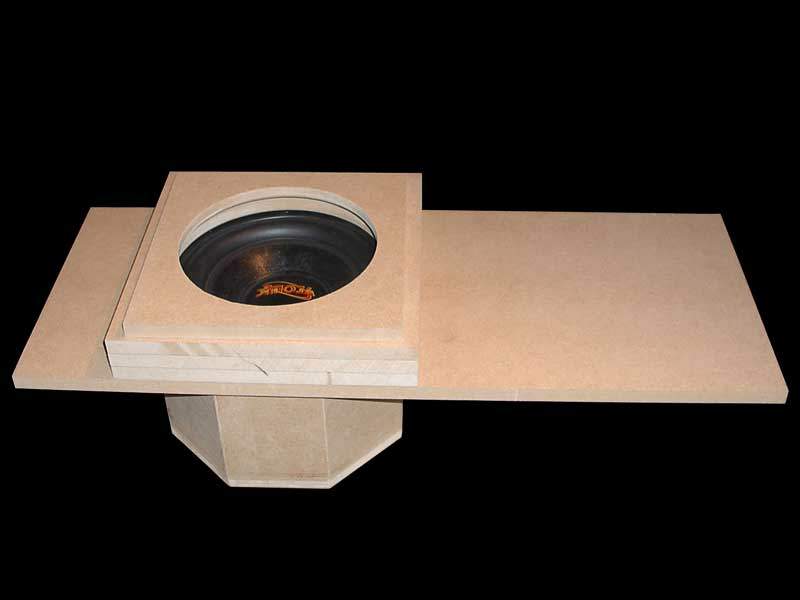 De galants hebben in de hoedenplank al standaard een 8" subwoofer gat, dus hakken en zagen is niet nodig. Via een extra laagje MDF is echter ook een 10" in te passen (8" hadden een absurde levertijd, anders was dat het geworden).