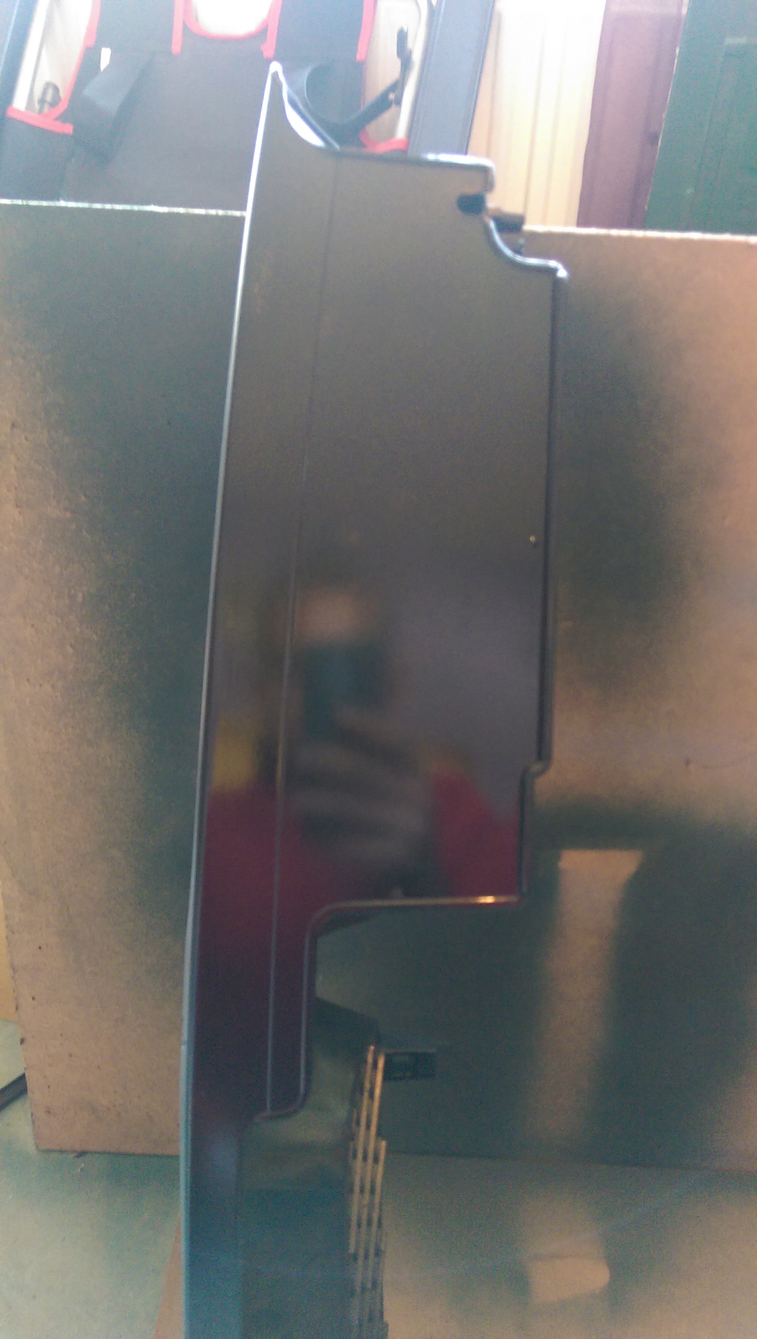 Binnenkort ook maar is mijn zijskirts spuiten, bij mijn vorige auto's ook zelf gedaan. Dat was altijd een normale kleur (rood) dus eerst maar wat proef gespoten omdat ik nooit met metallic gewerkt heb. De oude stock grill maar gepakt en daarna maar de kapjes van wielkasten gedaan. Is wel te zien dat het niet profi is, maar ik vind het iig veel beter dan dat zwart/grijs