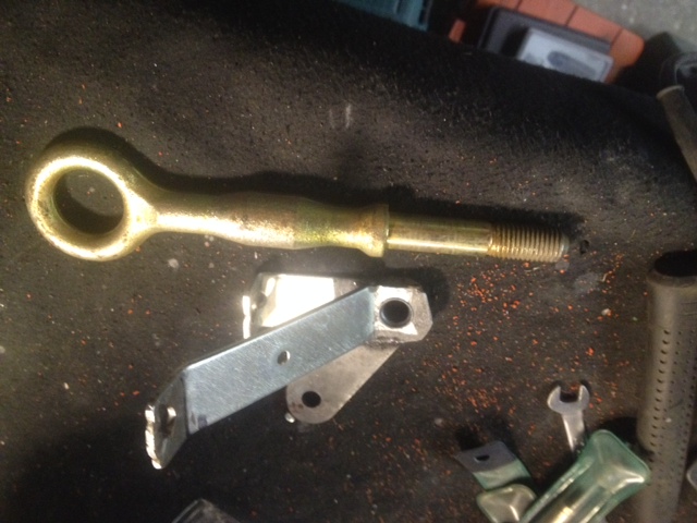 Verder een nieuwe beugel gemaakt voor het onlangs gekochte (verwijderbare) trek/sleep-oog, omdat de fabrieks-sleepoog heel laag zit en met een andere voorbumper trek je de bumper helemaal aan gort. Nu is het een kwestie van 1 kruiskopje losdraaien zodat het mistlamp roostertje losgehaald kan worden en dan zit daar ineens een beugel met schroefdraad waar het (Volvo) sleepoog ingedraaid kan worden. Ik had alleen geen boor die groot genoeg was zodat ik m'n tap kan gebruiken. Komt van de week wel, als dit goed gaat, maak ik er nog eentje voor de VR2