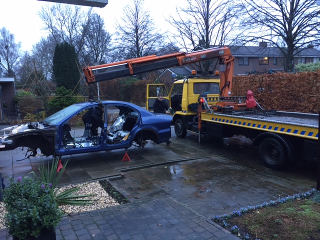 Tot een paar dagen terug kon ik ondanks de ontiegelijke hoeveelheid onderdelen die ik er al afgehaald had nog steeds de auto starten en sturen, niet dat ik het gedaan heb, maar ik wist dat het nog kon! Op het moment dat de laatste vitale aders dan afgekoppeld worden (benzineleidingen bijvoorbeeld) dan is het einde echt daar. Deze auto zal nooit meer op eigen kracht een meter rijden. Z'n lot was bezegeld, maar ik denk dat ie achteraf nog een paar prima jaren in de blessuretijd mee heeft mogen spelen en zich wellicht meer prima-donna voelde dan ooit daarvoor