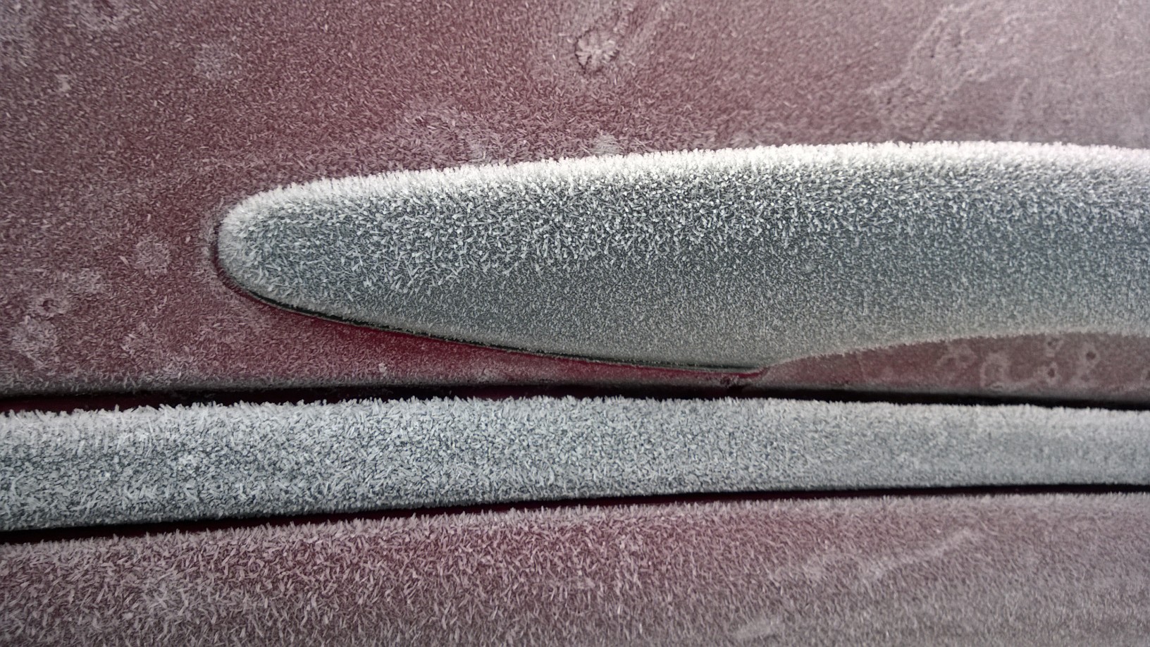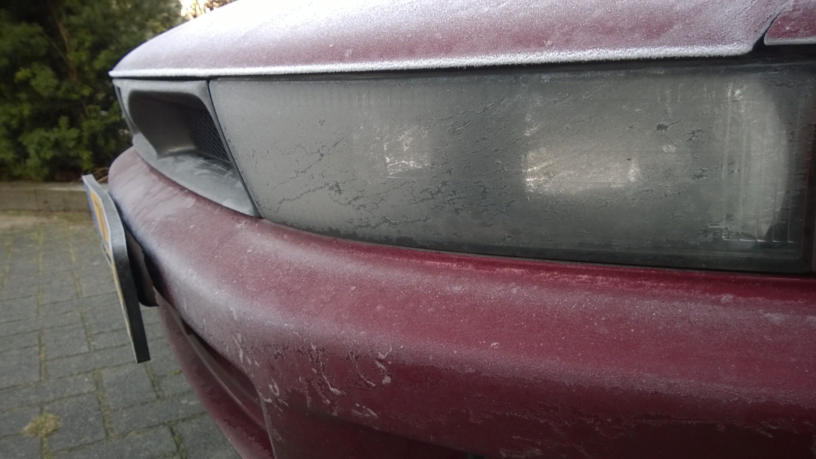 Inmiddels draait ie zijn rondjes in de pekel. Hier in het Noorden wordt nog regelmatig gestrooid (zie foto van motorkap vanmorgen).
