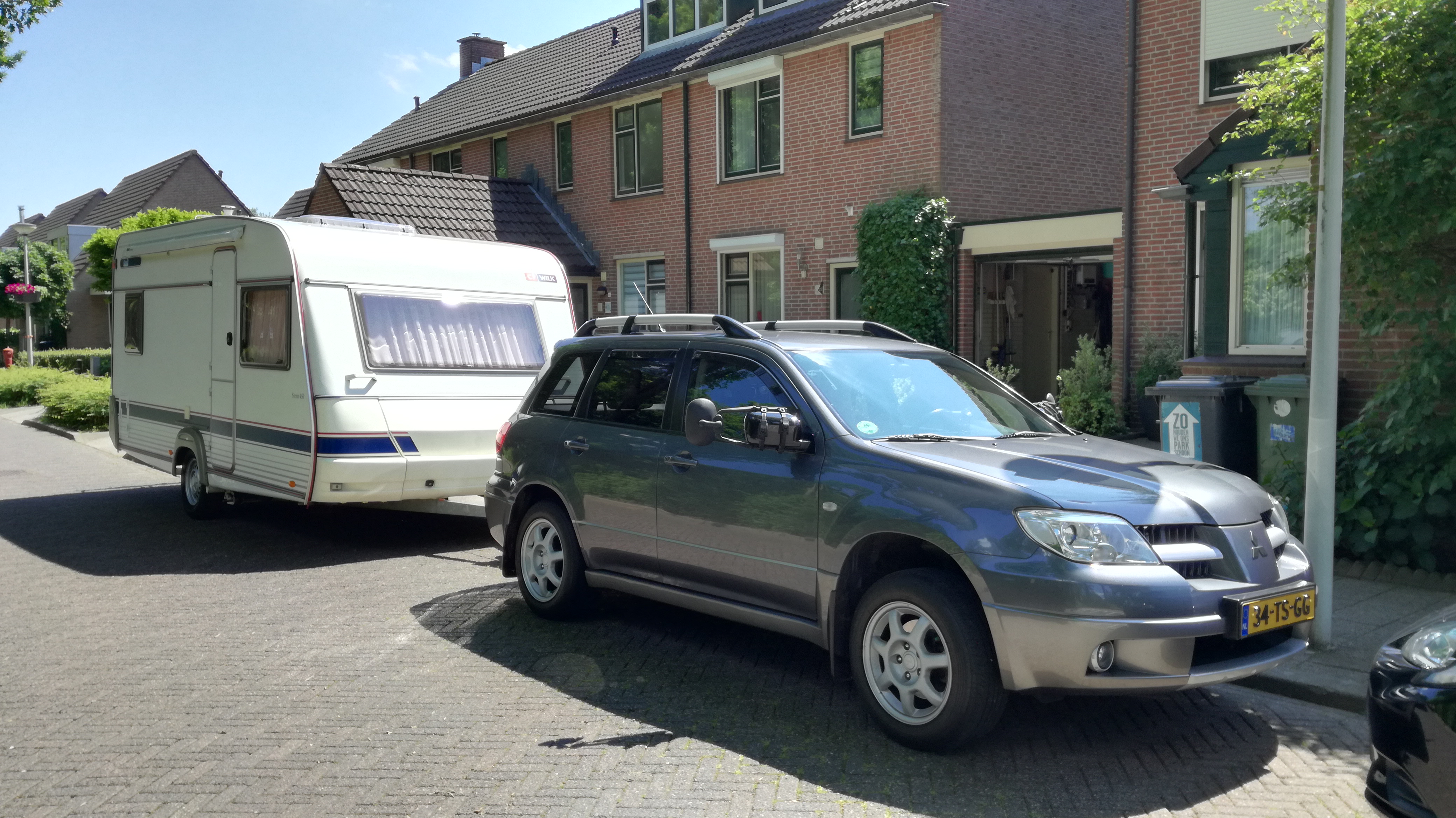 Ik moet eerlijk zeggen dat ik een dergelijk gewicht niet graag achter de Galant zou hangen. Met ruim 1400 kg aan de haak was het heeeeel goed opletten tijdens het rijden. Wat dit betreft merk je dat de Outlander zwaarder is, nog een tikkie stugger geveerd en dat zijn stroomlijn (welke?) er voor zorgt dat de rijwind meer over de caravan heen gaat. De paar extra pk'tjes van de Galant mis ik soms even.