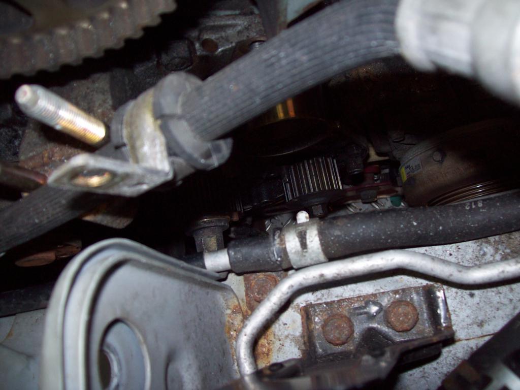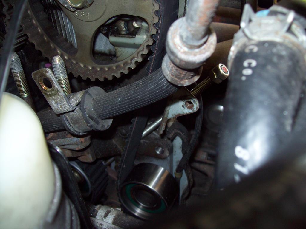 - onder de krukas poelie als hij rond is en niet zoals op foto 1 recht. Dan is hij zevenbolt