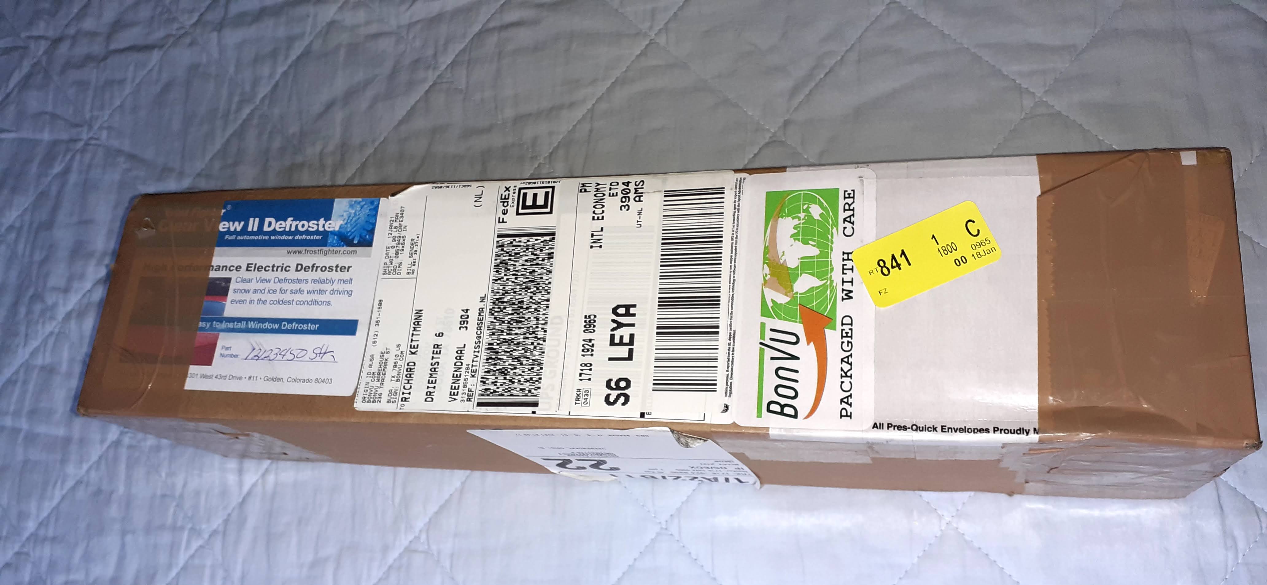 Vandaag de nieuwe achterruitverwarming (plakset) uit Amerika ontvangen.
