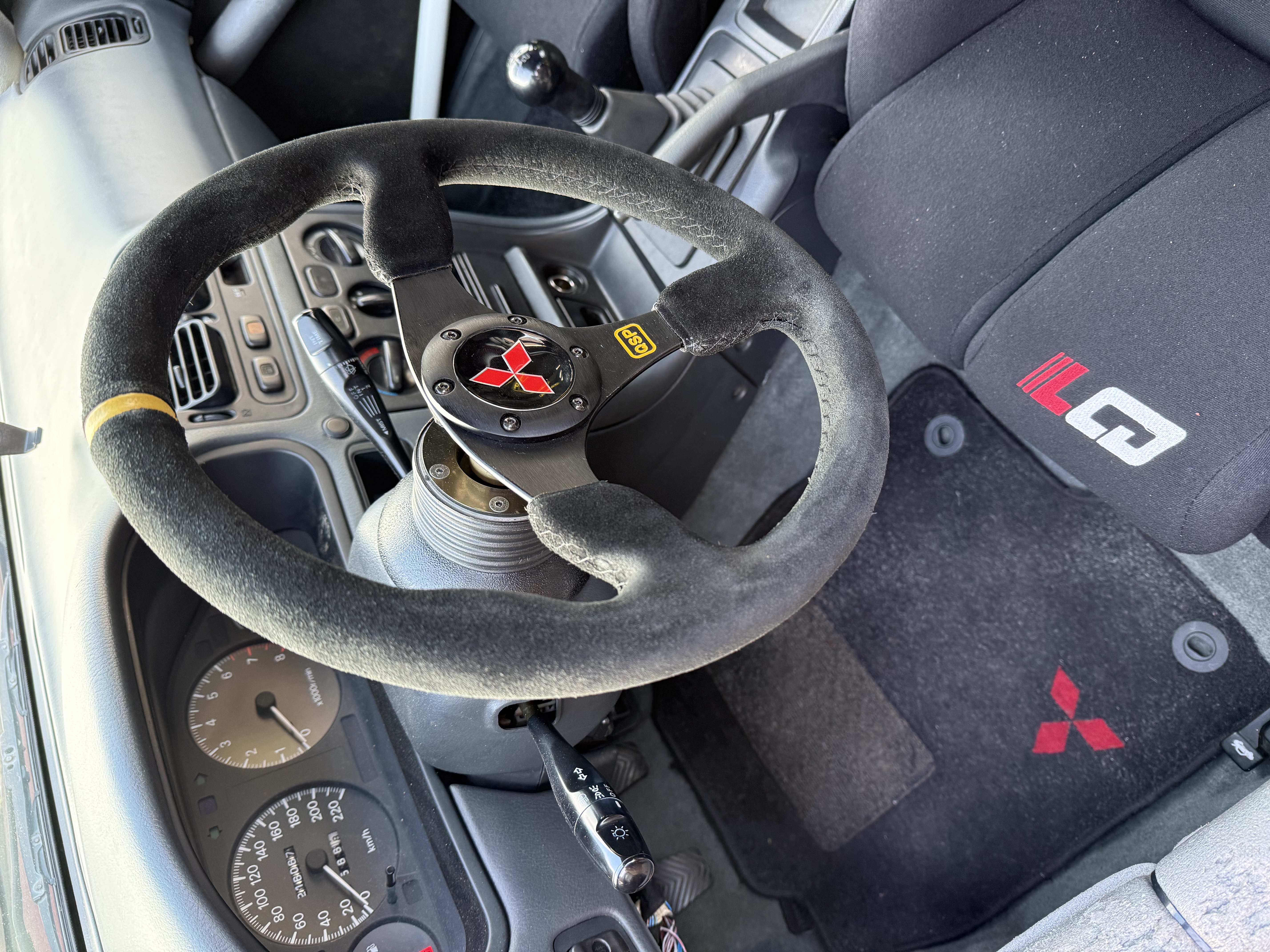 VR-4 OEM strut Brace, VR-4 OEM Brakes, EVO 6 OEM OZ racing Rims, Recaro Sport Trendline seats, OEM CC, OEM AUTO A/C, OEM HL Washers, OEM Folding Mirrors, OEM Muffler Control.