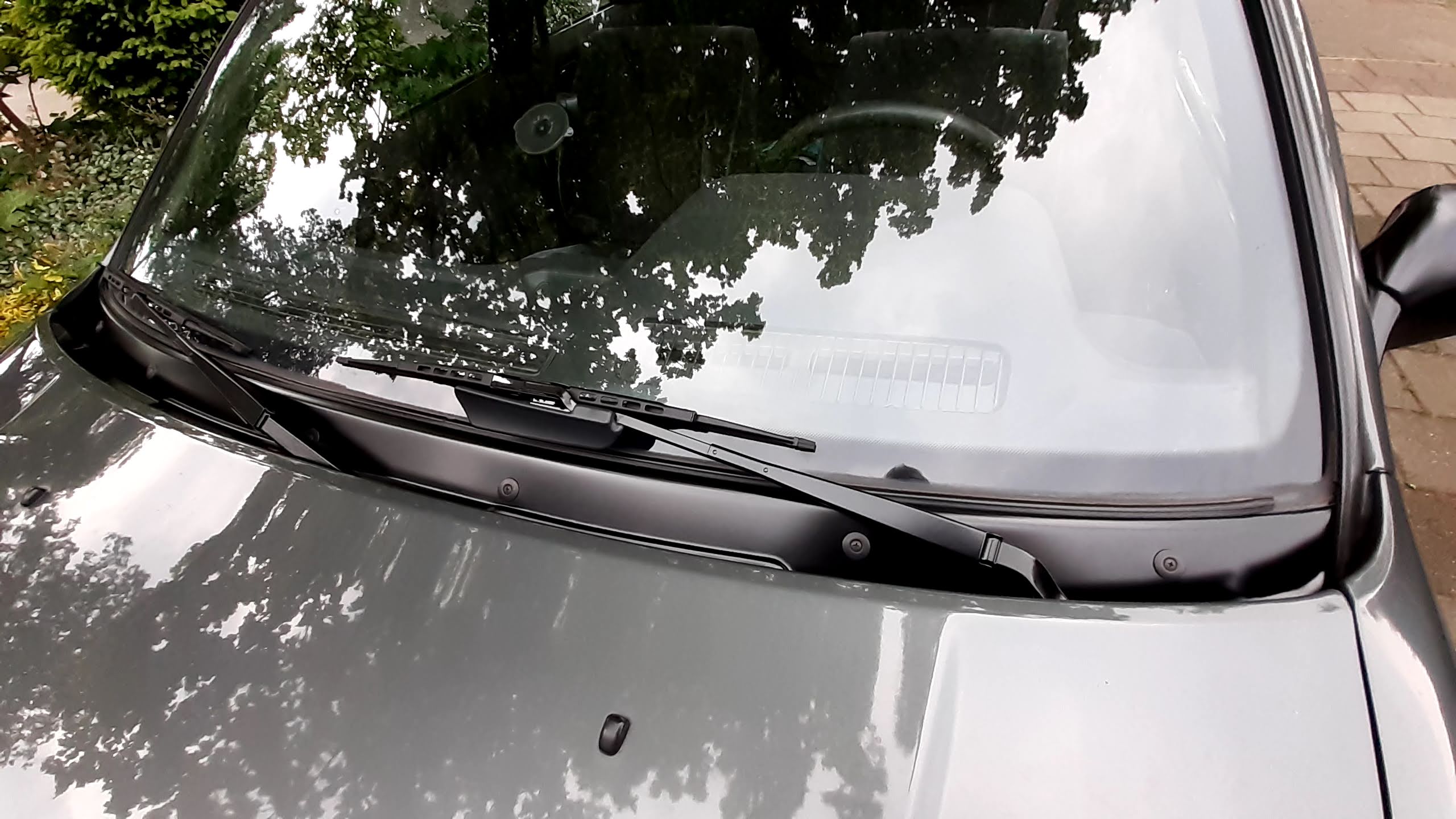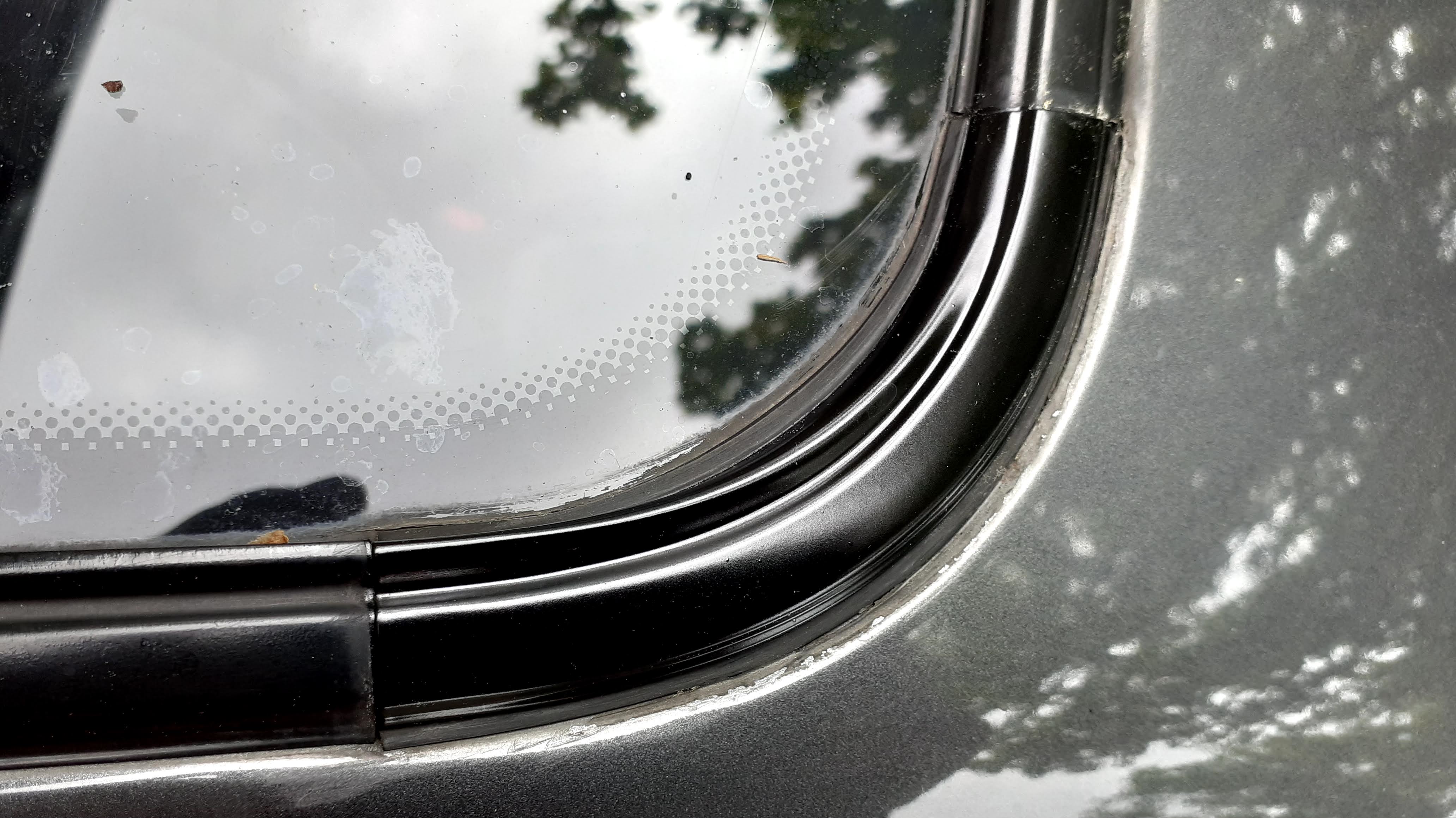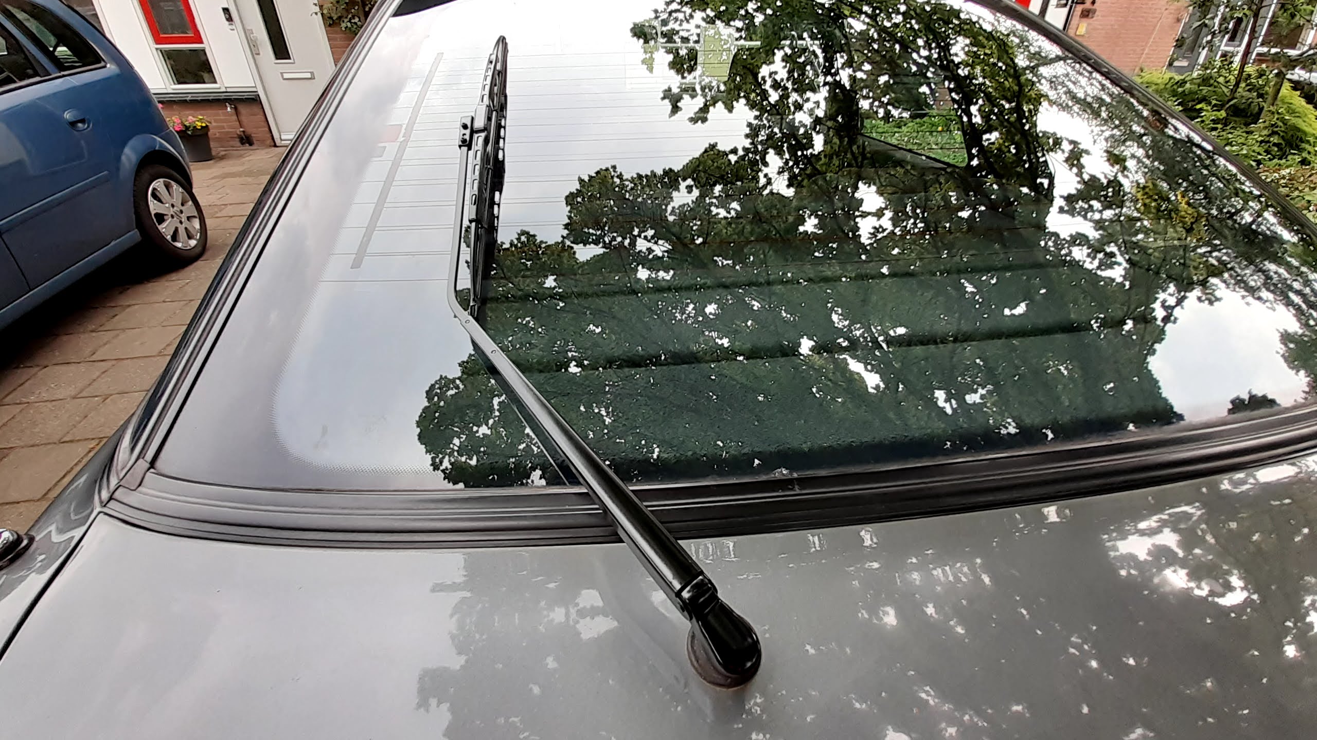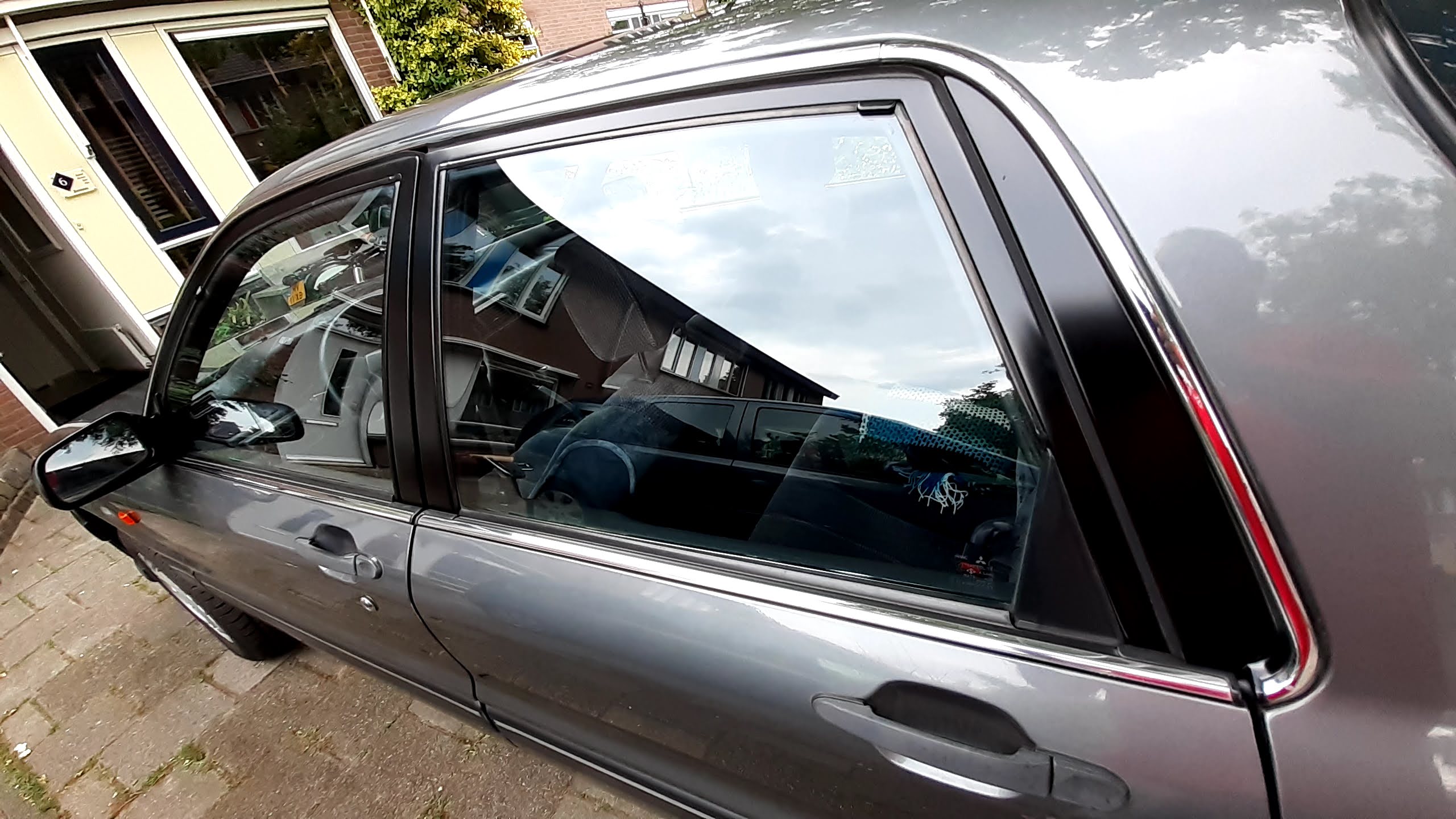 Wat hij aangepakt heeft: raamlijsten portieren, spiegels, ruitenwissers, paravan en bovenhoeken voorruit. Is weer als nieuw.