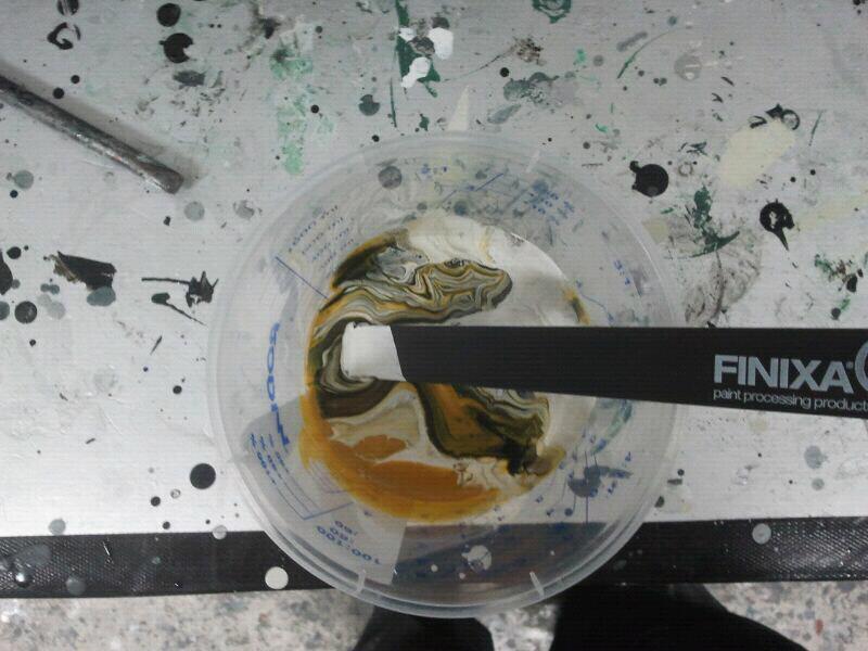 Aangezien deze al snel weer netjes in elkaar zat, de ander (rechter zijde) ook aan hem gegeven om die ook opnieuw te spuiten. Ziet er wel zo netjes uit he. Die
