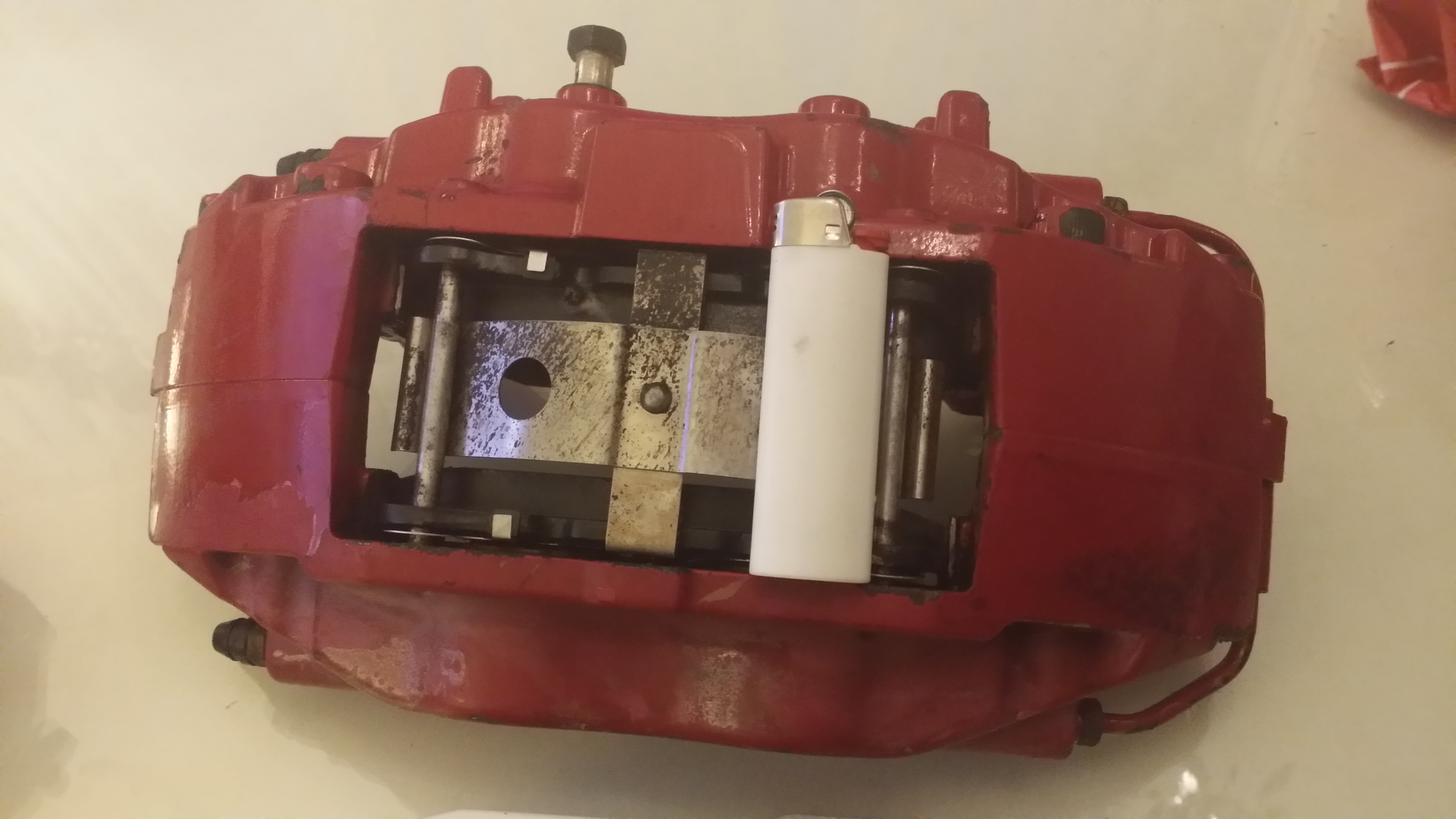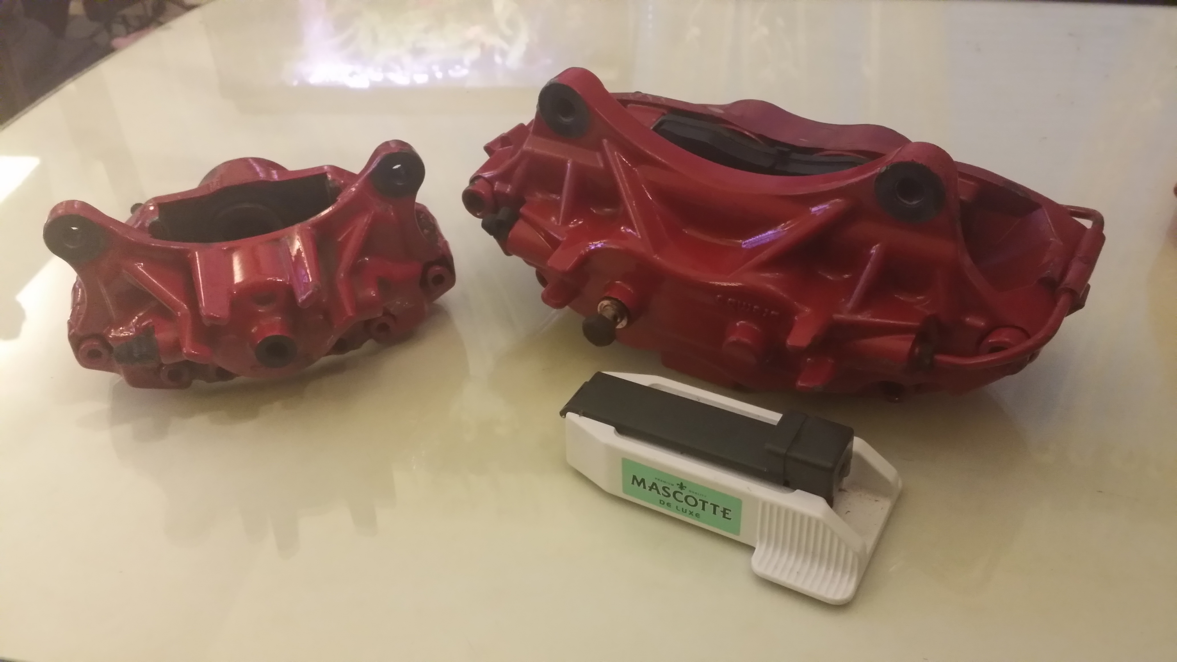 Vandaag is viezerik (voor deze ene keer lieve erik) langs geweest om de set brembo's bij ons af te gooien , leuk om ze eens in je handen te hebben en te weten wat voor monsters het werkelijk zijn ,heb dmv een aansteker en een apparaatje om sigaretten mee te maken proberen te laten zien hoe groot/dik ze zijn ,geloof me ..op de fotos zie je dat niet